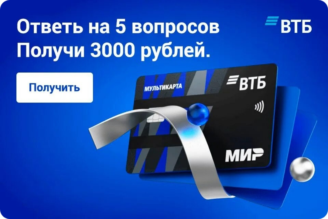 Оформи продукт от ВТБ по этой ссылке и получи 1 000 рублей.